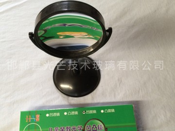 帶底座凹透鏡 直徑:10厘米 焦距:負300mm 幼兒園小朋友 或者中小學生認識凹透鏡的特點 學習凹透鏡光學原理的的器材 尺寸大也時候教師教學演示用教具 知識拓展閱讀: 凸透鏡與凹透鏡可以從以下幾個方面加以區(qū)別:外形特征、對光線的作用、成像特點及用途等。具體方法如下: 方法一:用手摸,鏡子的中央部分比邊緣厚的是凸透鏡,鏡子的中央部分比邊緣薄的是凹透鏡。 方法二:隔著鏡子觀察距鏡子較近的書上的字,有放大作用的是凸透鏡;字變小的是凹透鏡。 方法三:隔著鏡子觀察距鏡子較近的書上的字,移動鏡子,若發(fā)現(xiàn)像的移動方向總是與鏡子的移動方向相同,則該鏡子是凹透鏡;若發(fā)現(xiàn)像的移動方向總是與鏡子的移動方向相反,則該鏡子是凸透鏡。 方法四:隔著鏡子觀察窗外的物體,若能看到上下左右都顛倒的像,這種鏡子是凸透鏡;若看到像是正立的,這種鏡子是凹透鏡。 方法五:將點燃的蠟燭放在離透鏡適當距離處,在另一側(cè)光屏上能得到倒立實像的是凸透鏡;無論怎樣調(diào)節(jié),在另一側(cè)光屏上不能得到像的是凹透鏡。 方法六:讓鏡子正對太陽光照射,在鏡子的另一側(cè)放一張與透鏡平行的白色卡片紙,耐心調(diào)節(jié)鏡子與紙之間的距離,能得到一個小亮點的是凸透鏡;始終不能獲得小亮點的是凹透鏡。 方法七:觀察陽光通過了兩副眼鏡在地面上形成的光斑,若形成光斑的中間比四周明亮,則鏡子是凸透鏡;若形成光斑的中間比四周暗,則鏡子是凹透鏡。 方法八:近視眼鏡,是用凹透鏡做成的。老花鏡,是用凸透鏡做成的。 說明:辨別凸透鏡與凹透鏡有好多方法,哪種方法好,要視具體情況而定。例如,如果待辨別透鏡的中央與邊緣的厚薄差異不明顯,就不能用“摸”的方法(況且精密光學儀器是不允許直接用手去摸的);在有太陽光與沒有太陽光的場合,所選的方法也不同。總之,一種好方法,應該簡便、易行、有效。它是隨場合變化而變化的,不宜一概而論。 技巧:當你想要判別兩件事物的相同和不同之處時,就需要用比較與對比的方法。比較就是找出事物的相似性,即共同特征。對比是找出事物的不同點。用這種方法來分析事物,能幫助你發(fā)現(xiàn)一些平時容易忽略的細節(jié)。